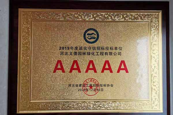 近幾年來我公司被授予2019年-2022年河北省扶貧龍頭企業(yè)、2018年國家林業(yè)標準化示范企業(yè)、2019年度全國苗圃50強、2018-2019年度河北省林業(yè)重點龍頭企業(yè)、2018年保定市精品特色現代農業(yè)園區(qū)、2018年度保定林木種苗協(xié)會授予特色苗圃、2018年度北方十佳特色苗圃、2016-2019年河北省建設工程招標投標誠實守信5A級施工企業(yè)等榮譽稱號,2017年保定市林木種苗龍頭企業(yè)、石家莊市2017年度優(yōu)秀園林企業(yè)。